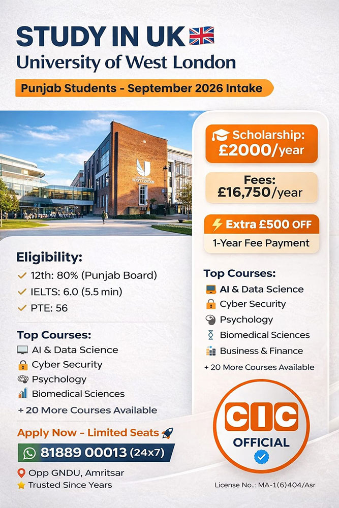 CIC is a trusted study abroad and medical admissions consultancy, headquartered in the heart of the historic city of Amritsar, Punjab. Established on 9th December 2013, CIC was founded with a clear and transparent vision – to provide honest, reliable, and student-focused guidance to individuals aspiring to build their careers in India and abroad.