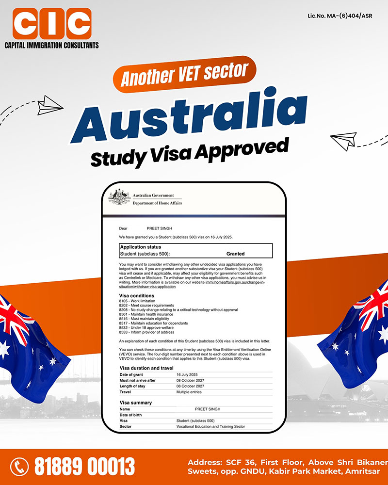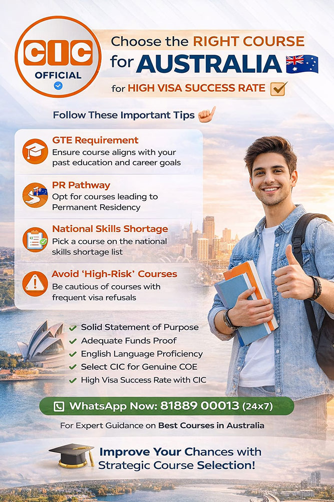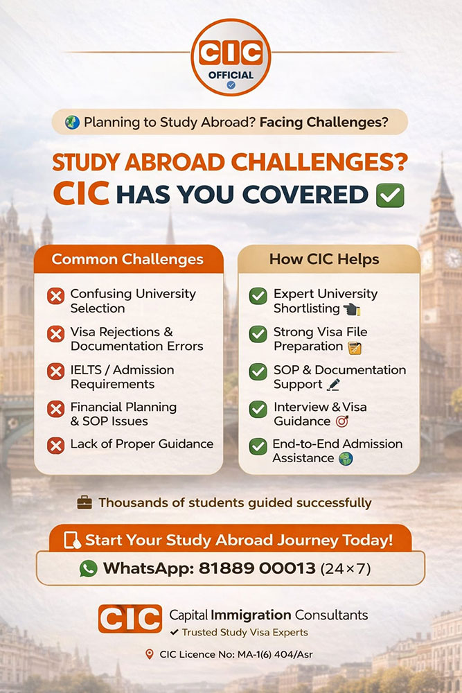 CIC specializes in student visa consulting, offering reliable, transparent, and expert guidance to students aspiring to study abroad. From course and university selection to documentation, financial planning, and visa filing, we provide end-to-end support tailored to each student’s profile. With a structured and ethical approach, we simplify the student visa process and help students move forward with clarity, confidence, and compliance.