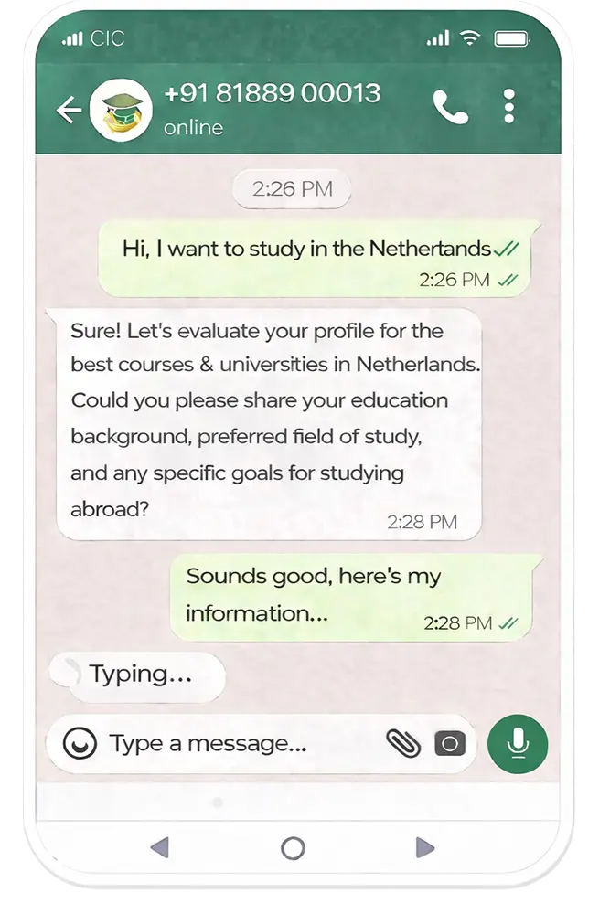 The Netherlands is one of the top European study destinations, known for its high-quality education system, innovative teaching methods, and wide range of English-taught programs. At CIC, a trusted study visa consultant in Amritsar, we guide students across Punjab to access globally recognized universities and career opportunities in the Netherlands.