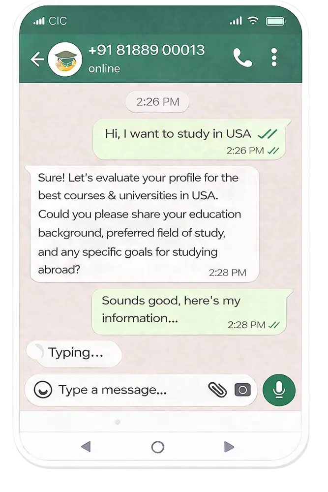The USA is one of the top study destinations in the world, known for its globally ranked universities, diverse course options, and excellent career opportunities. At CIC, a trusted study visa consultant in Amritsar, we guide students across Punjab to achieve their dream of studying in the United States.